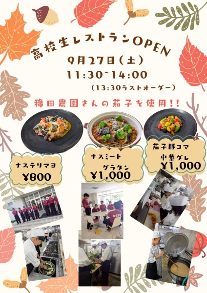 高校生レストランOPEN🍴お待たせしましたっ‼️今年2回目となる高校生レストランが9月27日(土)にOPEN します🤩今回の高校生レストランでは、3種類のメニューの中から選んでいただけるようになりました‼️メニューの考...
